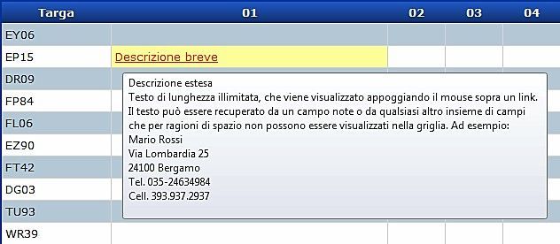 Testo di lunghezza illimitata, che viene visualizzato appoggiando il mouse sopra un link. Il testo può essere recuperato da un campo note o da qualsiasi altro insieme di campi che per ragioni di spazio non possono essere visualizzati nella griglia.